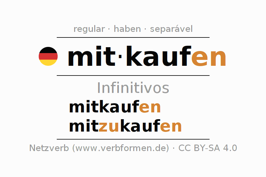 As formas do infinitivo do verbo mitkaufen (adquirir junto, comprar junto) são: mitkaufen, mitzukaufen