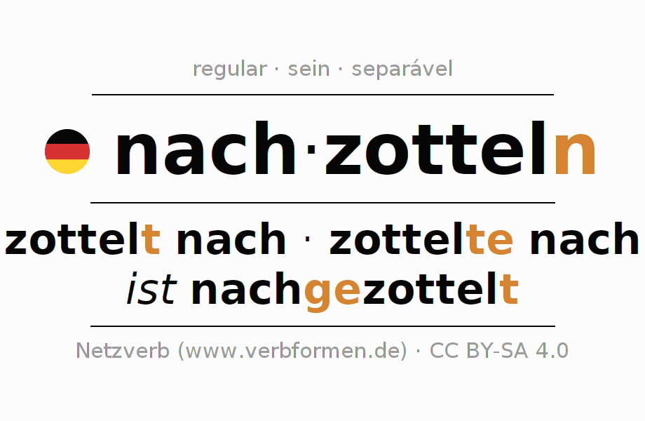As formas do infinitivo do verbo nachzotteln (seguir de forma desordenada) são: nachzotteln, nachzuzotteln