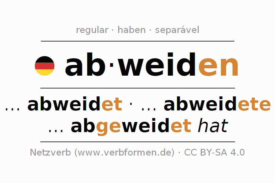 O verbo abweiden é totalmente conjugado em todas as pessoas e números no Infinitivo Presente Perfeito
