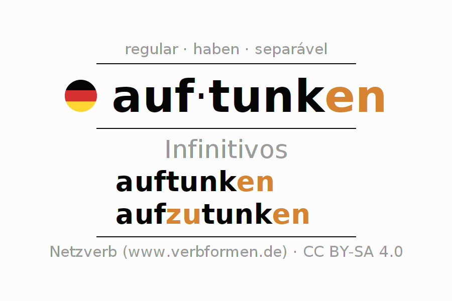 A conjugação do verbo auftunken no Ativo Infinitivo Presente Perfeito forma básica é: auftunken, aufzutunken.A formação dessas formas segue determinadas regras gramaticais. Os requisitos para a conjugação do verbo como forma verbal simples no auftunken do Infinitivo. Comentários ☆