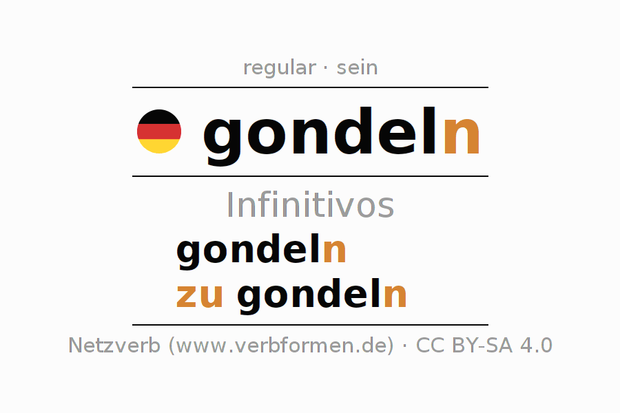 A conjugação do verbo gondeln no Ativo Infinitivo Presente Perfeito forma básica é: gondeln, zu gondeln.A formação dessas formas segue determinadas regras gramaticais. Os requisitos para a conjugação do verbo como forma verbal simples no gondeln do Infinitivo. Comentários ☆