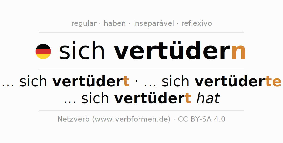 O verbo sich vertüdern é totalmente conjugado em todas as pessoas e números no Infinitivo Presente Perfeito