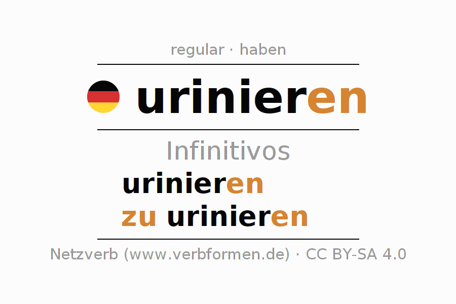 A conjugação do verbo urinieren no Ativo Infinitivo Presente Perfeito forma básica é: urinieren, zu urinieren.A formação dessas formas segue determinadas regras gramaticais. Os requisitos para a conjugação do verbo como forma verbal simples no urinieren do Infinitivo. Comentários ☆