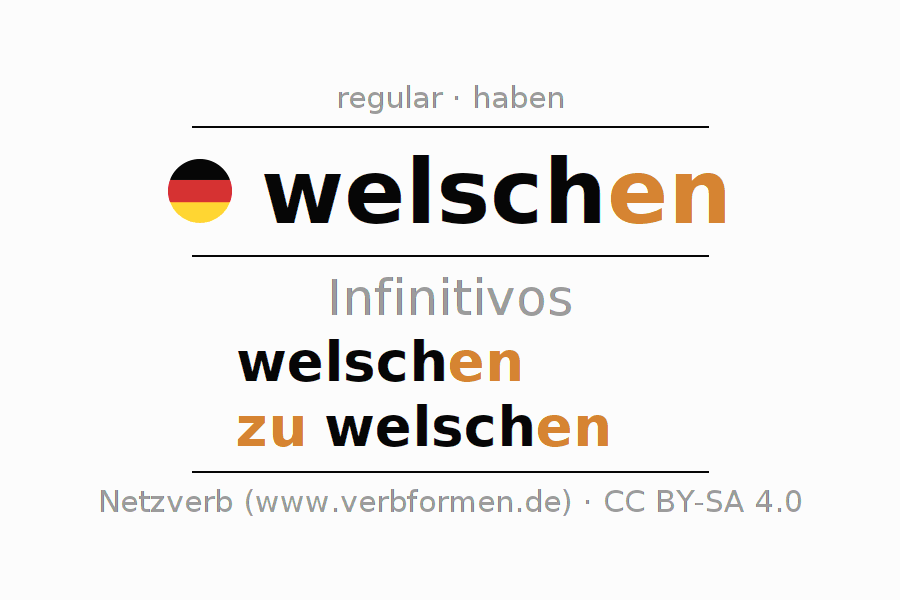 O verbo welschen é totalmente conjugado em todas as pessoas e números no Infinitivo Presente Perfeito