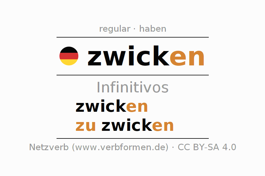 O verbo zwicken é totalmente conjugado em todas as pessoas e números no Infinitivo Presente Perfeito