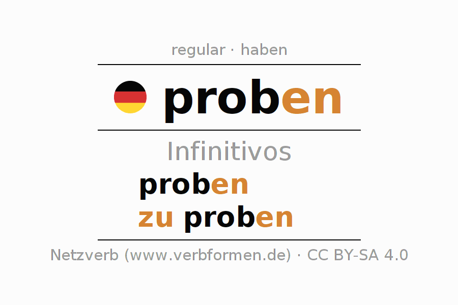 As formas do infinitivo do verbo proben (ensaiar) são: proben, zu proben