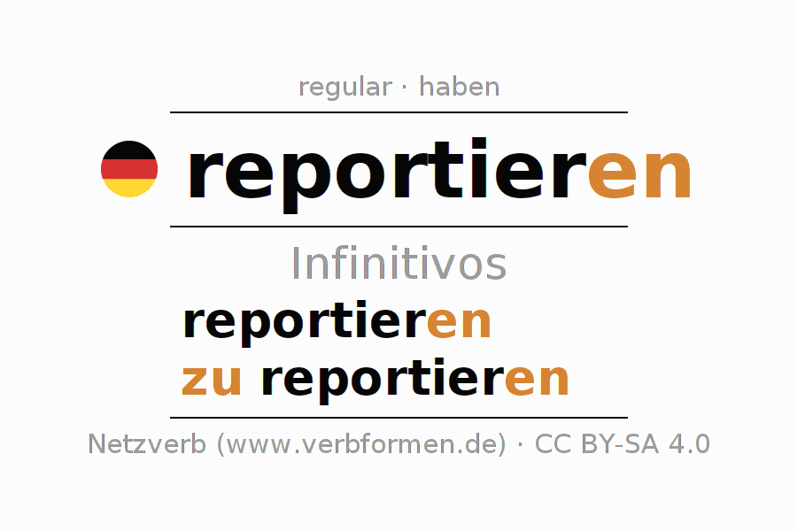 As formas do infinitivo do verbo reportieren (relatar, reportar) são: reportieren, zu reportieren