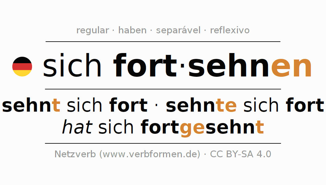 As formas do infinitivo do verbo sich fortsehnen (ansehnen, desejar) são: sich fortsehnen, sich fortzusehnen