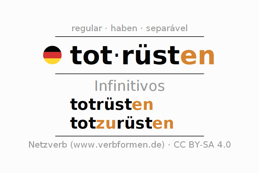 As formas do infinitivo do verbo totrüsten (inchar de recursos, superdimensionar) são: totrüsten, totzurüsten