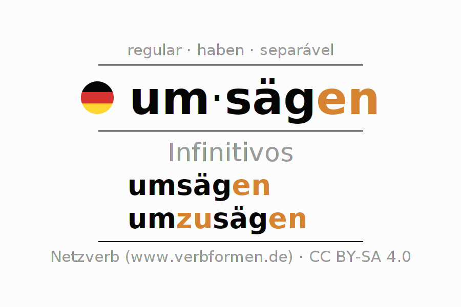 As formas do infinitivo do verbo umsägen (cortar, derrubar) são: umsägen, umzusägen