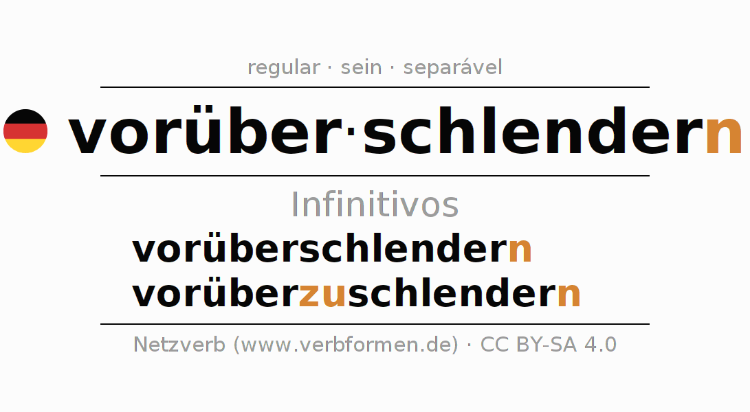 As formas do infinitivo do verbo vorüberschlendern (andar despreocupadamente, passear) são: vorüberschlendern, vorüberzuschlendern