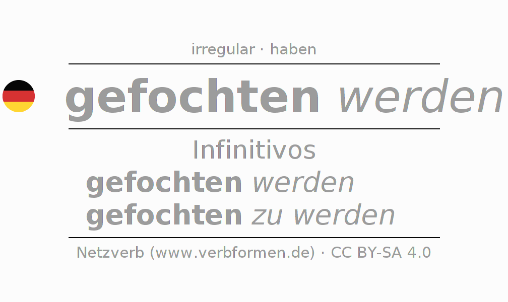 O verbo fechten é totalmente conjugado em todas as pessoas e números no Infinitivo Presente Perfeito