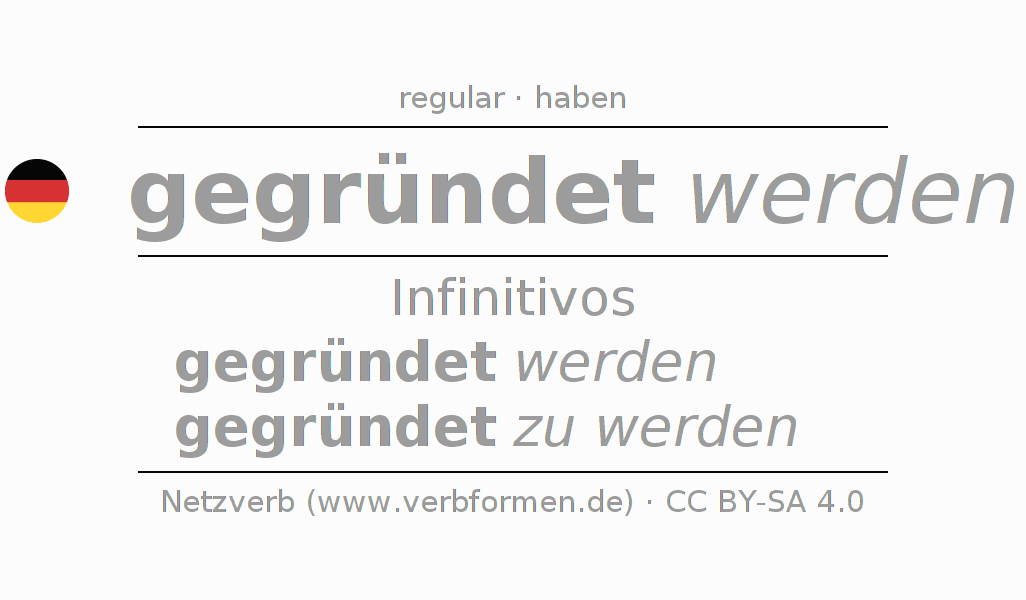 A conjugação do verbo gründen no Voz Passiva Infinitivo Presente Perfeito forma básica é: gegründet werden, gegründet zu werden.A formação dessas formas segue determinadas regras gramaticais. Os requisitos para a conjugação do verbo como forma verbal simples no gründen do Infinitivo. Comentários ☆
