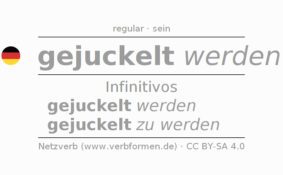 A conjugação do verbo juckeln no Voz Passiva Infinitivo Presente Perfeito forma básica é: gejuckelt werden, gejuckelt zu werden.A formação dessas formas segue determinadas regras gramaticais. Os requisitos para a conjugação do verbo como forma verbal simples no juckeln do Infinitivo. Comentários ☆