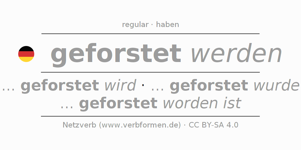 A conjugação do verbo forsten no Voz Passiva Infinitivo Presente Perfeito forma básica é: geforstet werden, geforstet zu werden.A formação dessas formas segue determinadas regras gramaticais. Os requisitos para a conjugação do verbo como forma verbal simples no forsten do Infinitivo. Comentários ☆