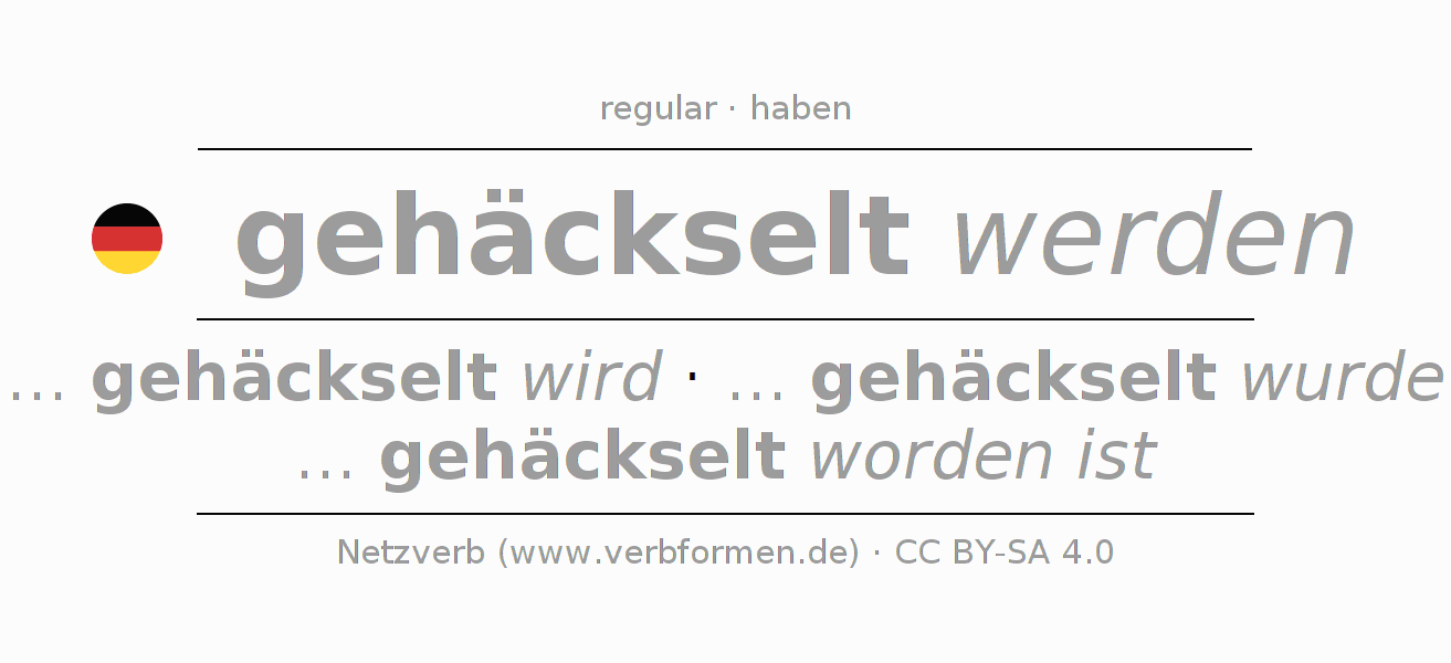 O verbo häckseln é totalmente conjugado em todas as pessoas e números no Infinitivo Presente Perfeito