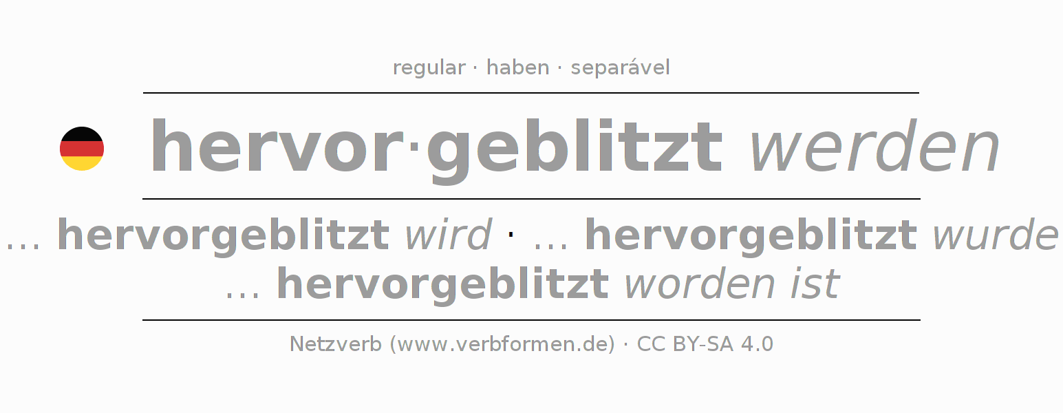 O verbo hervorblitzen é totalmente conjugado em todas as pessoas e números no Infinitivo Presente Perfeito
