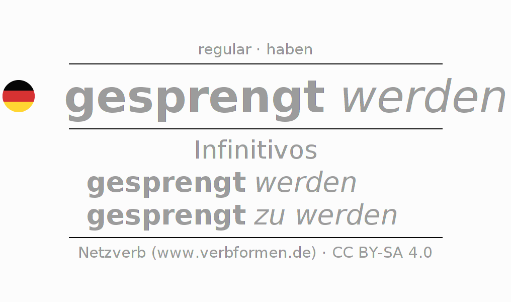 O verbo sprengen (hat) é totalmente conjugado em todas as pessoas e números no Infinitivo Presente Perfeito