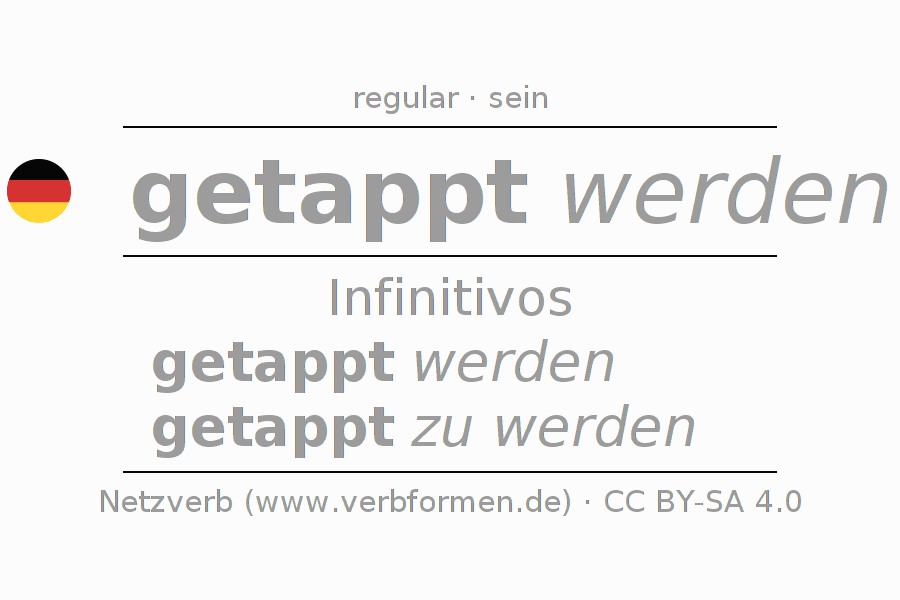A conjugação do verbo tappen no Voz Passiva Infinitivo Presente Perfeito forma básica é: getappt werden, getappt zu werden.A formação dessas formas segue determinadas regras gramaticais. Os requisitos para a conjugação do verbo como forma verbal simples no tappen do Infinitivo. Comentários ☆