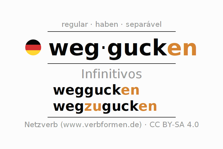As formas do infinitivo do verbo weggucken (desviar o olhar, desviar) são: weggucken, wegzugucken