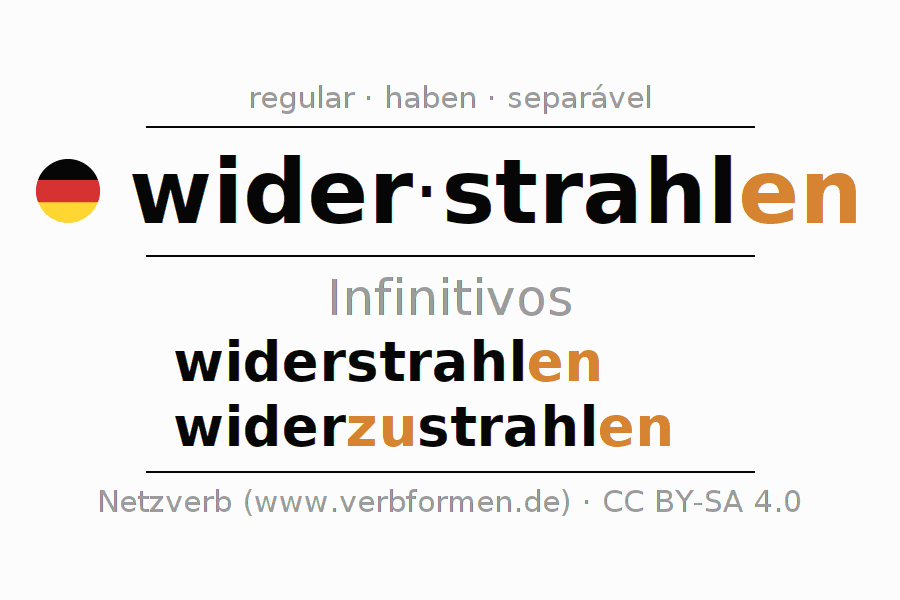 As formas do infinitivo do verbo widerstrahlen (refletir) são: widerstrahlen, widerzustrahlen