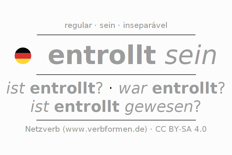 A conjugação do verbo entrollen no Estado passivo Infinitivo Presente Perfeito forma básica é: entrollt sein, entrollt zu sein.A formação dessas formas segue determinadas regras gramaticais. Os requisitos para a conjugação do verbo como forma verbal simples no entrollen do Infinitivo. Comentários ☆