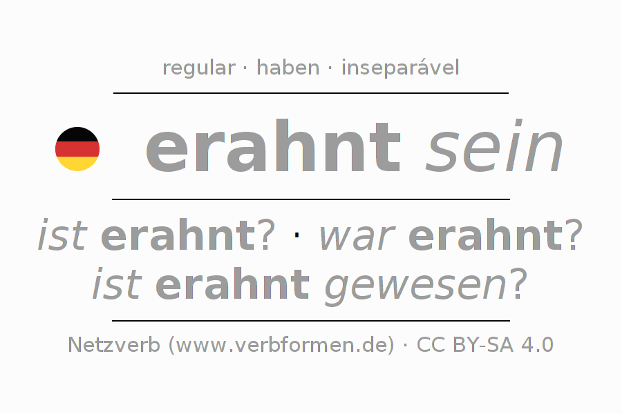 O verbo erahnen é totalmente conjugado em todas as pessoas e números no Infinitivo Presente Perfeito