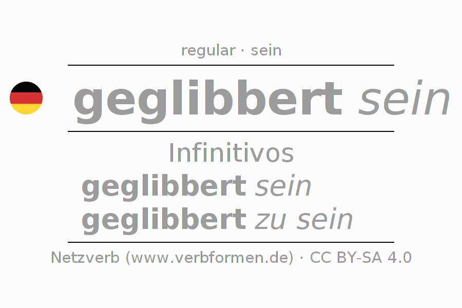 A conjugação do verbo glibbern no Estado passivo Infinitivo Presente Perfeito forma básica é: geglibbert sein, geglibbert zu sein.A formação dessas formas segue determinadas regras gramaticais. Os requisitos para a conjugação do verbo como forma verbal simples no glibbern do Infinitivo. Comentários ☆