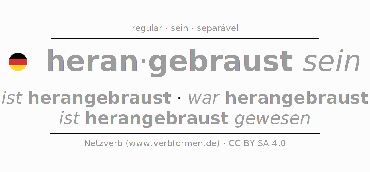 O verbo heranbrausen é totalmente conjugado em todas as pessoas e números no Infinitivo Presente Perfeito