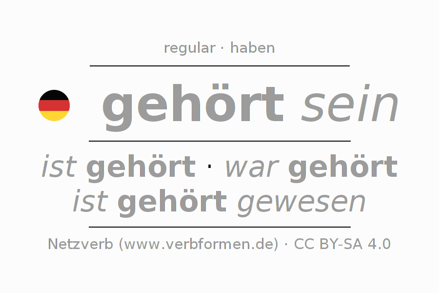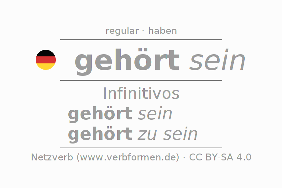 A conjugação do verbo hören no Estado passivo Infinitivo Presente Perfeito forma básica é: gehört sein, gehört zu sein.A formação dessas formas segue determinadas regras gramaticais. Os requisitos para a conjugação do verbo como forma verbal simples no hören do Infinitivo. Comentários ☆