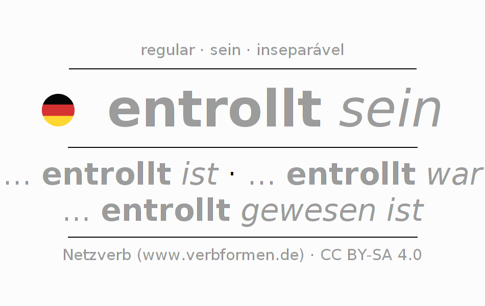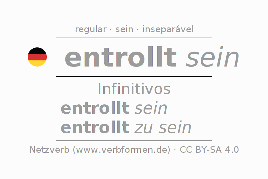 A conjugação do verbo entrollen no Estado passivo Infinitivo Presente Perfeito forma básica é: entrollt sein, entrollt zu sein.A formação dessas formas segue determinadas regras gramaticais. Os requisitos para a conjugação do verbo como forma verbal simples no entrollen do Infinitivo. Comentários ☆