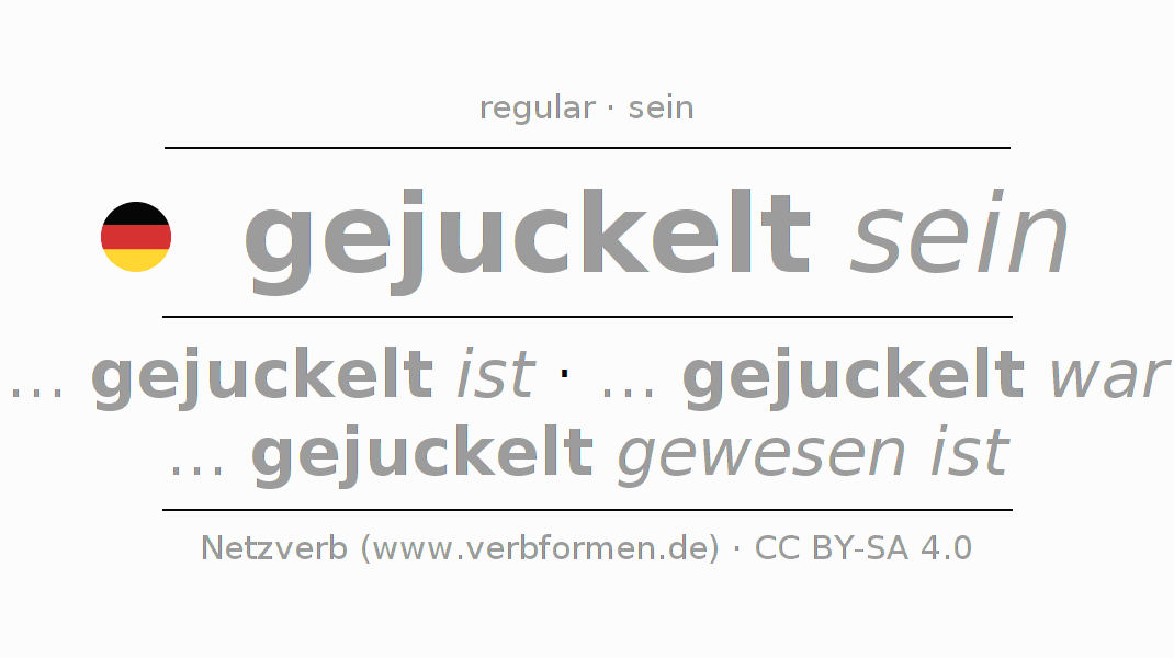 A conjugação do verbo juckeln no Estado passivo Infinitivo Presente Perfeito forma básica é: gejuckelt sein, gejuckelt zu sein.A formação dessas formas segue determinadas regras gramaticais. Os requisitos para a conjugação do verbo como forma verbal simples no juckeln do Infinitivo. Comentários ☆
