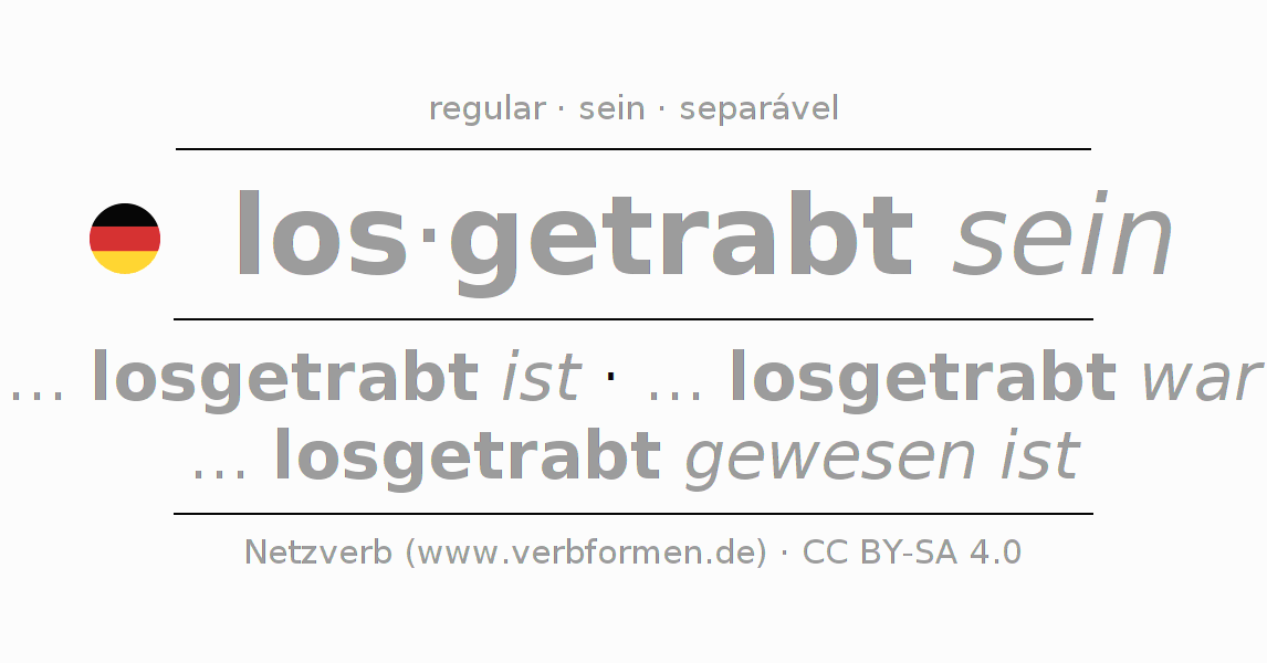 O verbo lostraben é totalmente conjugado em todas as pessoas e números no Infinitivo Presente Perfeito