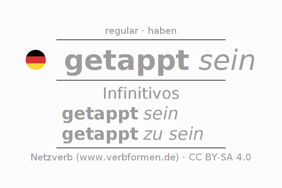 A conjugação do verbo tappen no Estado passivo Infinitivo Presente Perfeito forma básica é: getappt sein, getappt zu sein.A formação dessas formas segue determinadas regras gramaticais. Os requisitos para a conjugação do verbo como forma verbal simples no tappen do Infinitivo. Comentários ☆