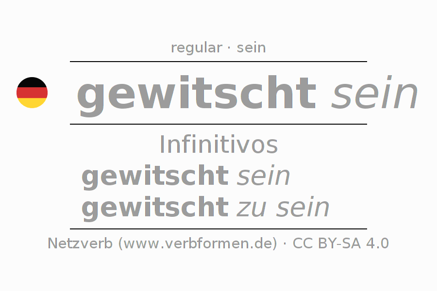 A conjugação do verbo witschen no Estado passivo Infinitivo Presente Perfeito forma básica é: gewitscht sein, gewitscht zu sein.A formação dessas formas segue determinadas regras gramaticais. Os requisitos para a conjugação do verbo como forma verbal simples no witschen do Infinitivo. Comentários ☆