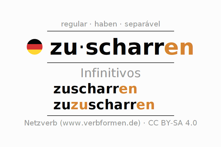 As formas do infinitivo do verbo zuscharren (cobrir) são: zuscharren, zuzuscharren