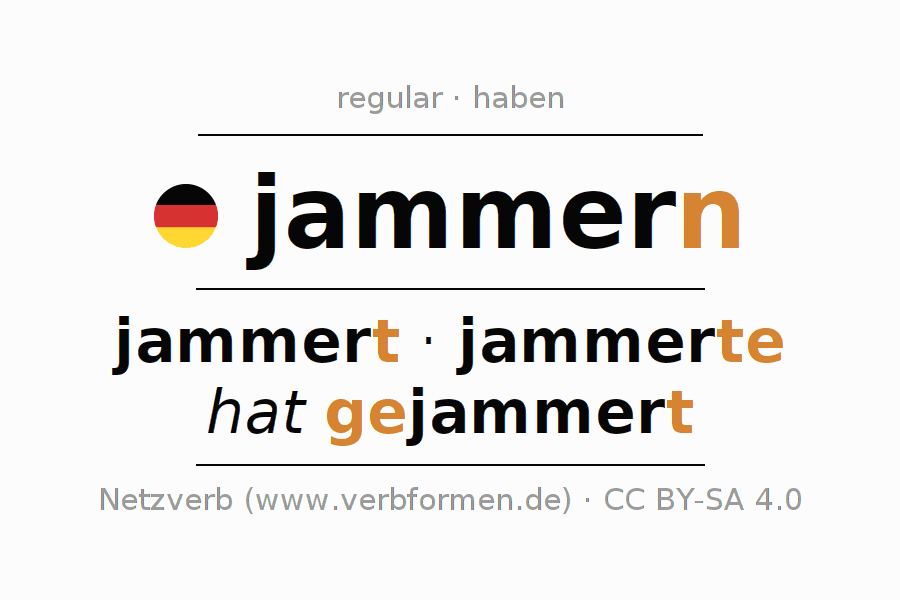A conjugação do verbo jammern (lamentar, queixar-se) é regular. As formas mais comuns são jammert, jammerte e hat gejammert. O verbo auxilar para jammern é "haben".