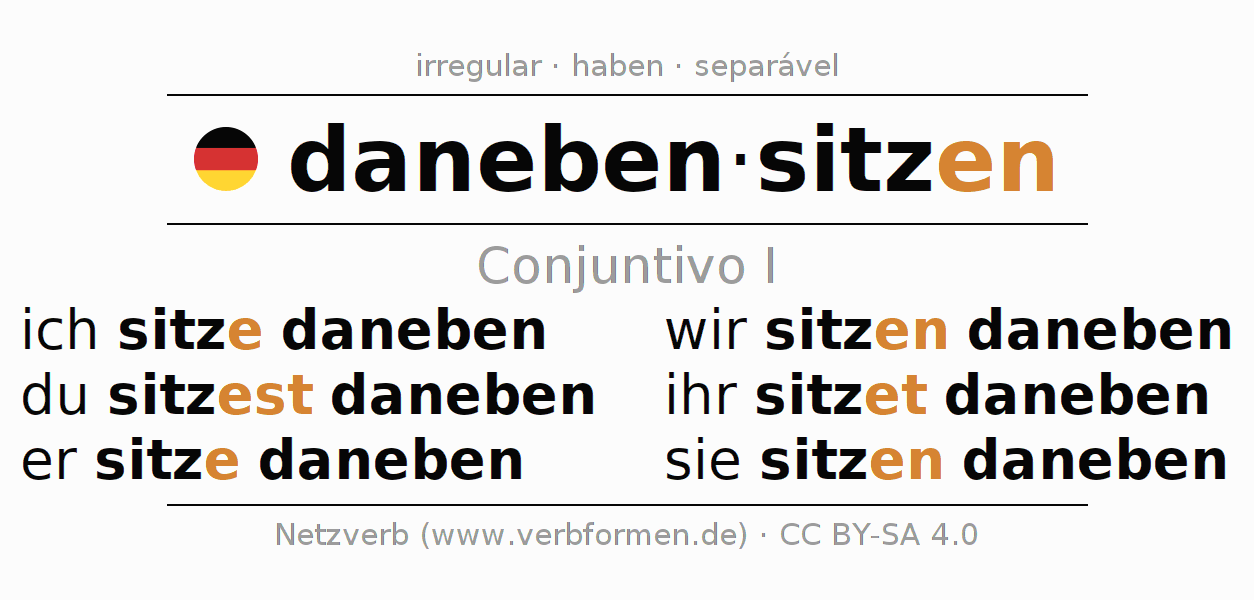 - Como conjugar o verbo danebensitzen no Conjuntivo I?