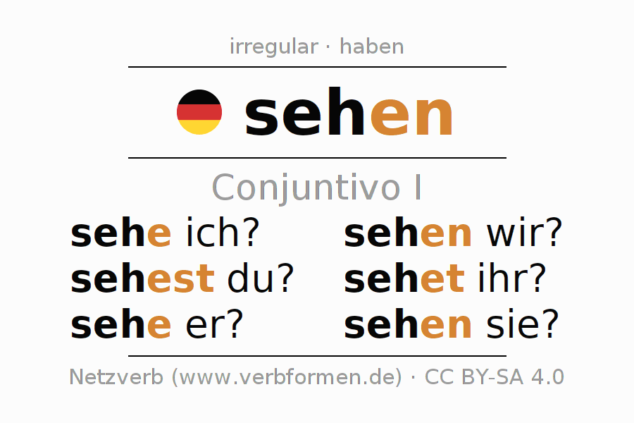 A conjugação do verbo sehen no Ativo Conjuntivo Presente Conjuntivo é: sehe ich?, sehest du?, sehe er?, sehen wir?, sehet ihr?, sehen sie?.A formação dessas formas segue determinadas regras gramaticais. Os requisitos para a conjugação do verbo como forma verbal simples no sehen do Conjuntivo I. Comentários ☆