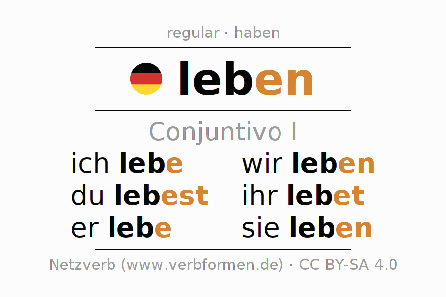 O verbo leben é totalmente conjugado em todas as pessoas e números no Conjuntivo Presente