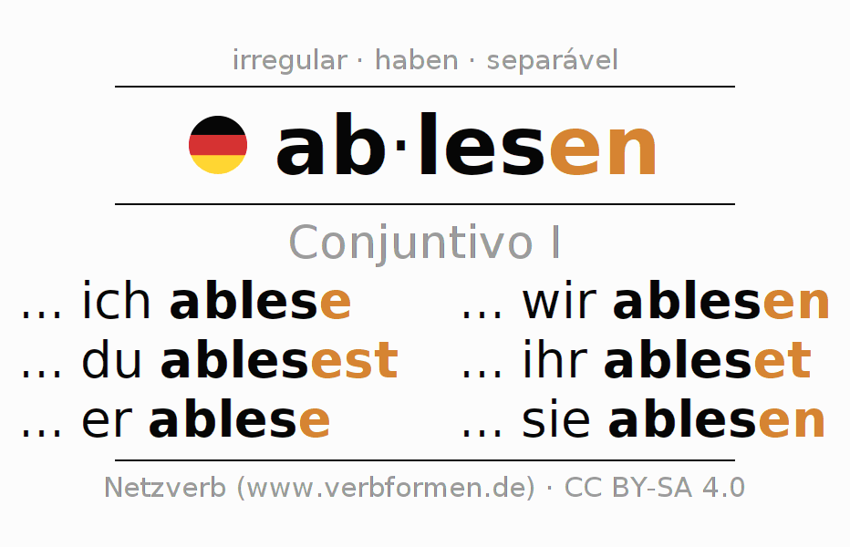 O verbo ablesen é totalmente conjugado em todas as pessoas e números no Conjuntivo Presente