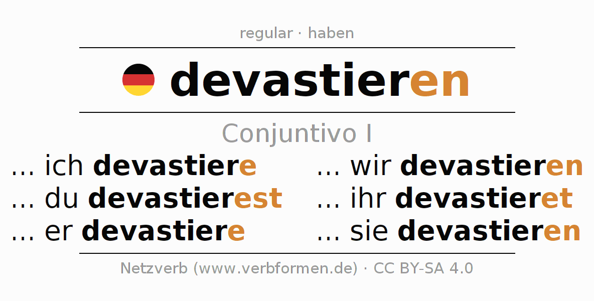 O verbo devastieren é totalmente conjugado em todas as pessoas e números no Conjuntivo Presente
