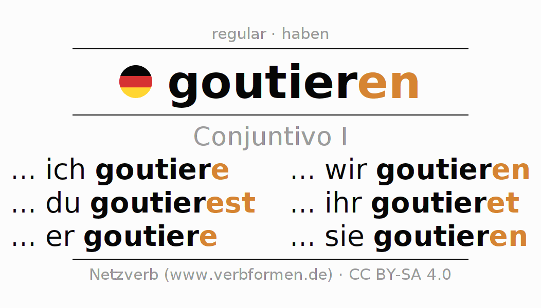 O verbo goutieren é totalmente conjugado em todas as pessoas e números no Conjuntivo Presente