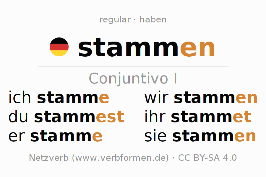 O verbo stammen é totalmente conjugado em todas as pessoas e números no Conjuntivo Presente