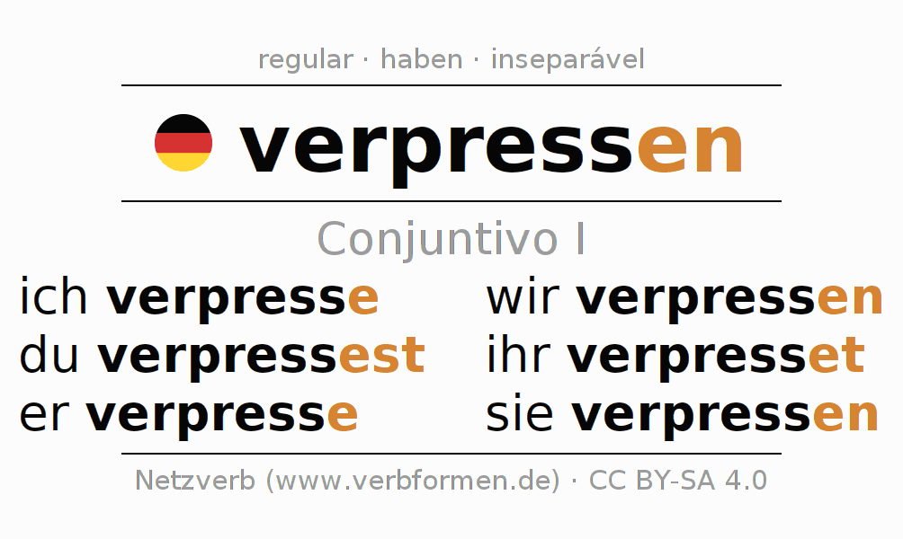 O verbo verpressen é totalmente conjugado em todas as pessoas e números no Conjuntivo Presente