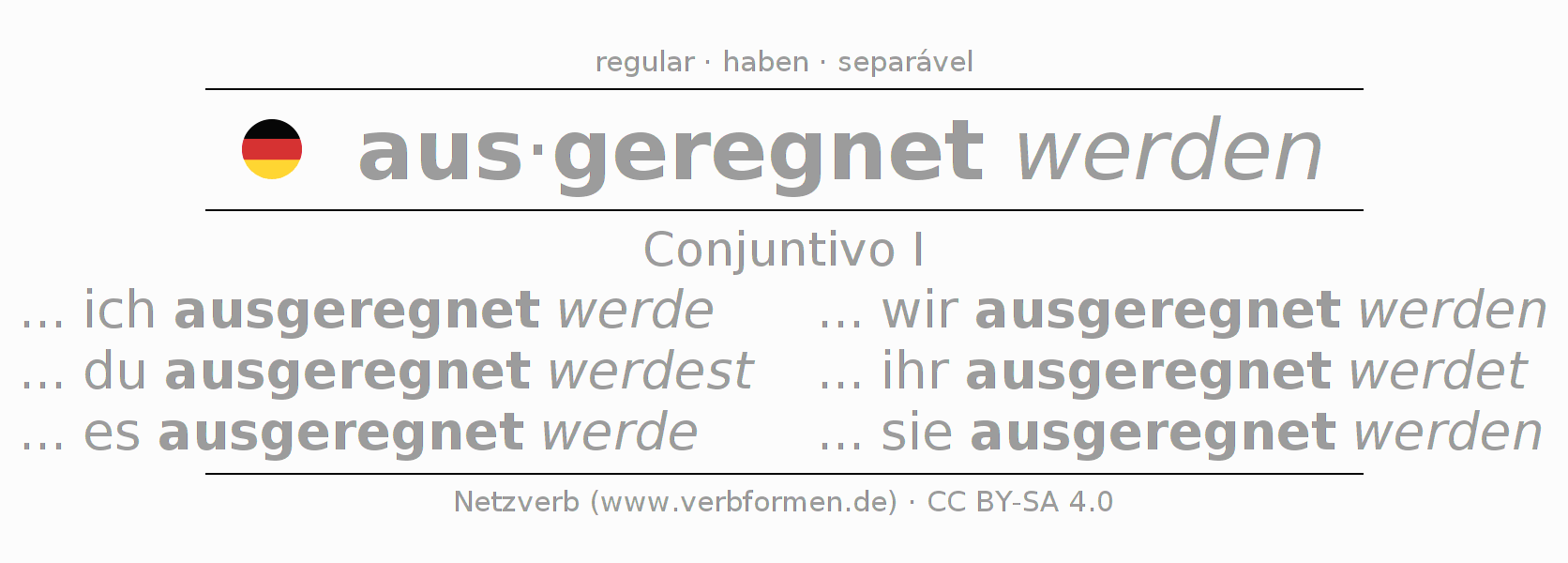 O verbo ausregnen é totalmente conjugado em todas as pessoas e números no Conjuntivo Presente