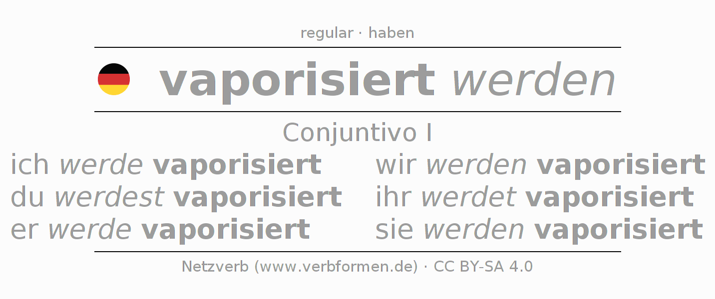O verbo vaporisieren é totalmente conjugado em todas as pessoas e números no Conjuntivo Presente