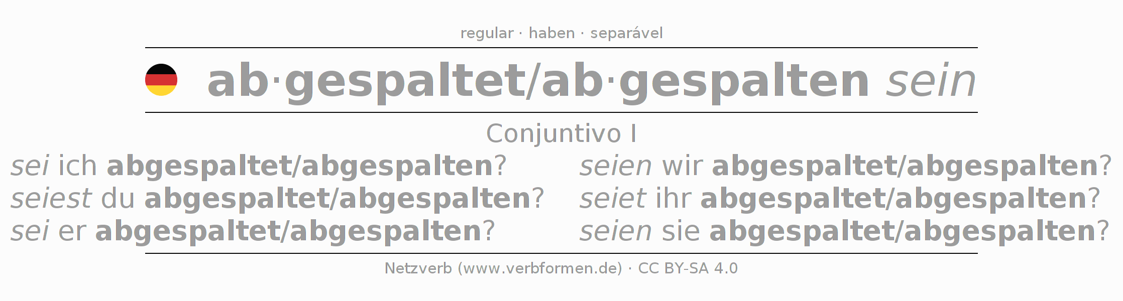 O verbo abspalten é totalmente conjugado em todas as pessoas e números no Conjuntivo Presente