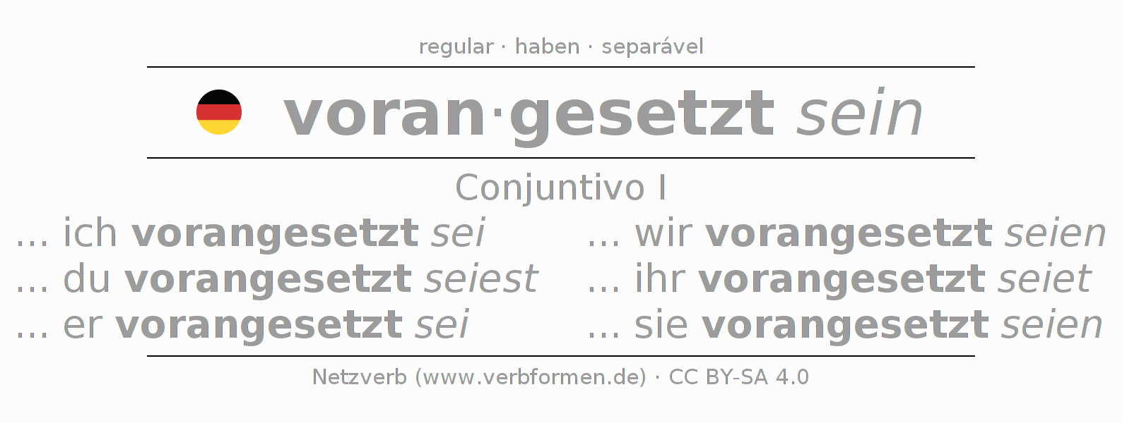 O verbo voransetzen é totalmente conjugado em todas as pessoas e números no Conjuntivo Presente