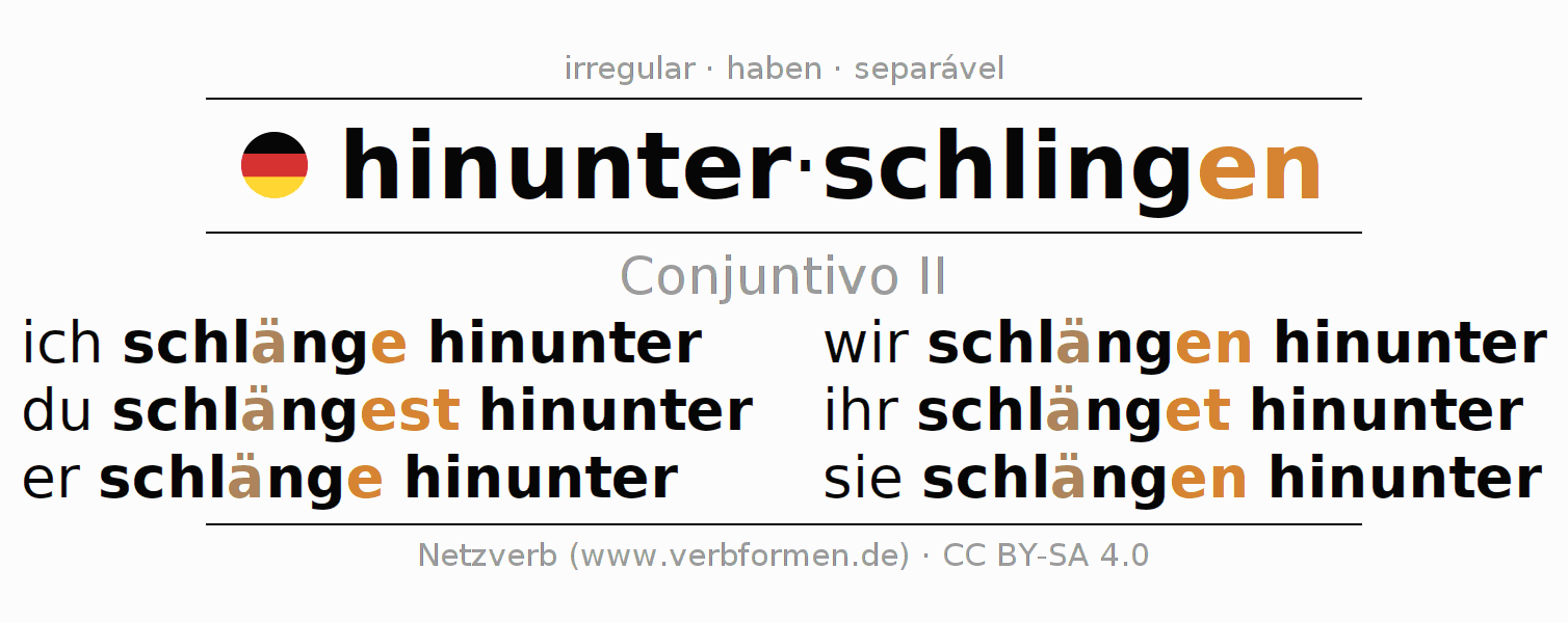 - Como conjugar o verbo hinunterschlingen no Conjuntivo II?